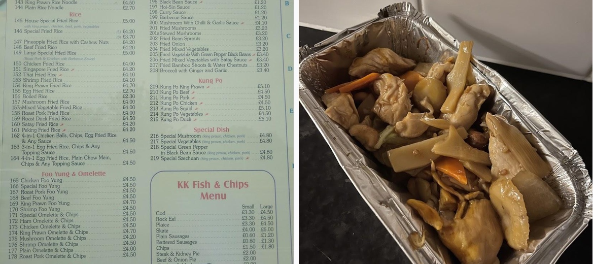 Discover delicious and affordable Chinese takeaway at K K Fish Bar in Grays. Indulge in our popular dishes including savory curry, crispy chips, flavorful chow mein, succulent satay, and fresh prawns, all served with a side of crispy spring rolls. Order now for a tasty experience!